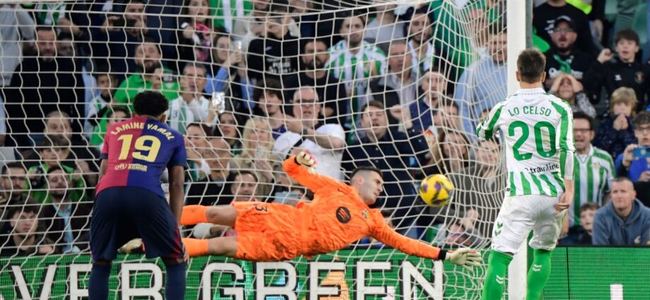 La insistencia de los locales tuvo premio cuando un pisotón del neerlandés Frenkie de Jong al brasileño Vitor Roque fue señalado como penalti, no antes de ser consultado en el VAR, y el argentino Giovani Lo Celso pudo el 1-1 en el minuto 67.