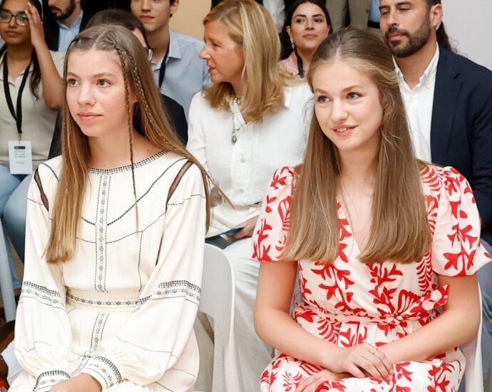 Uno de los puntos llamativos de esta prenda es su estampado. Un ‘print’ de leopardo chic en tonalidades azules. Cierra el ‘look’ con el pelo recogido en un moño y unas gafas de pasta en color camel.leer más…