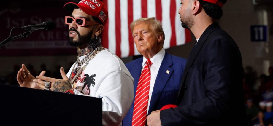 Los reguetoneros puertorriqueños Anuel AA y Justin Quiles participaron el viernes 30 de agosto en un mitin del expresidente de Estados Unidos y candidato republicano a la Casa Blanca, Donald Trump (2017-2021), en Pensilvania.