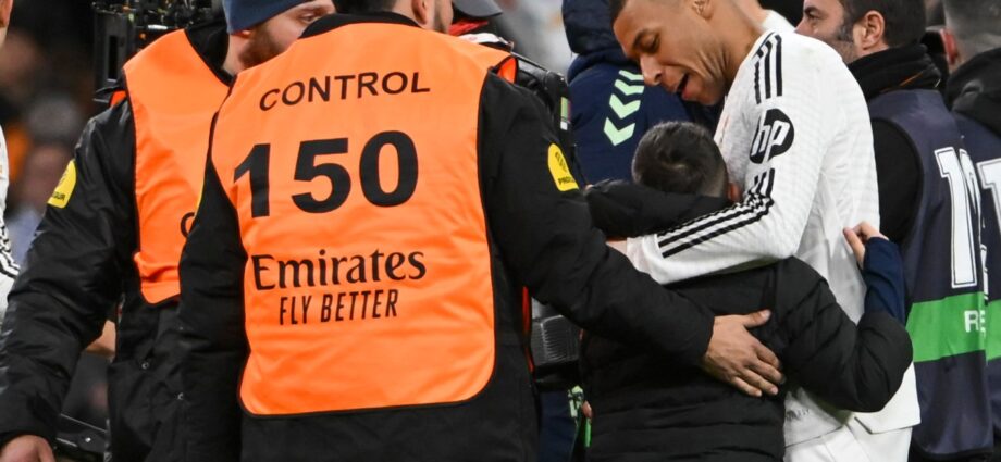 Al finalizar el partido, el Bernabéu vivió una escena que rápidamente se hizo viral en las redes sociales. Un niño logró evadir la seguridad e invadió el campo, corriendo emocionado hacia Kylian Mbappé. El pequeño, con lágrimas en los ojos, llegó hasta el delantero francés y se abrazó a él como si estuviera frente a su héroe más grande.