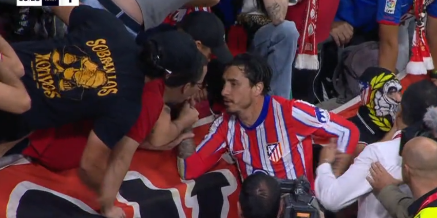 Koke trató de mediar con el portero en un primer momento. Hubo una advertencia desde la megafonía a los asistentes. Incluso viendo que la actitud continuaba con el lanzamiento de objetos tanto Koke como Giménez fueron al fondo para intermediar con los aficionados.